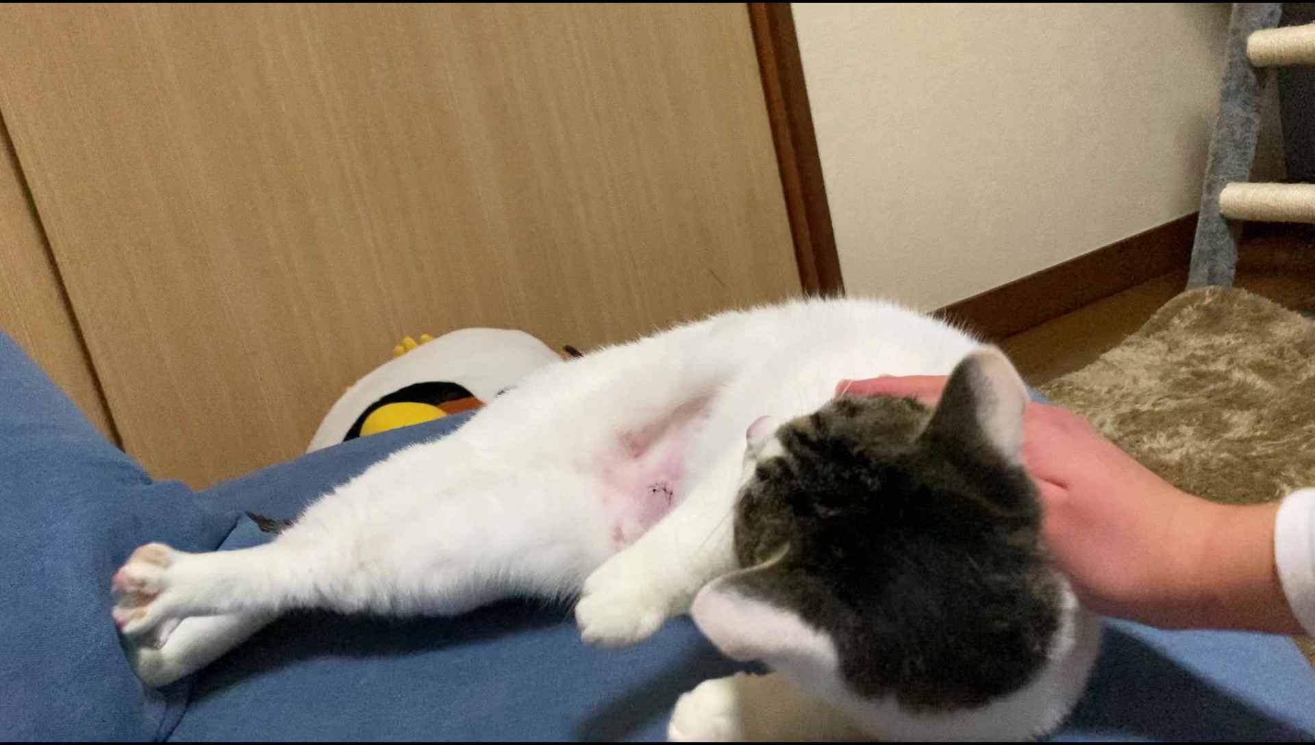 エリザベスカラーつけるのかな?と思っていたのですが必要ないとのことです。たまにお腹の糸をあむあむしちゃってますが、しっかり縫ってあるので見た感じ大丈夫そうです。