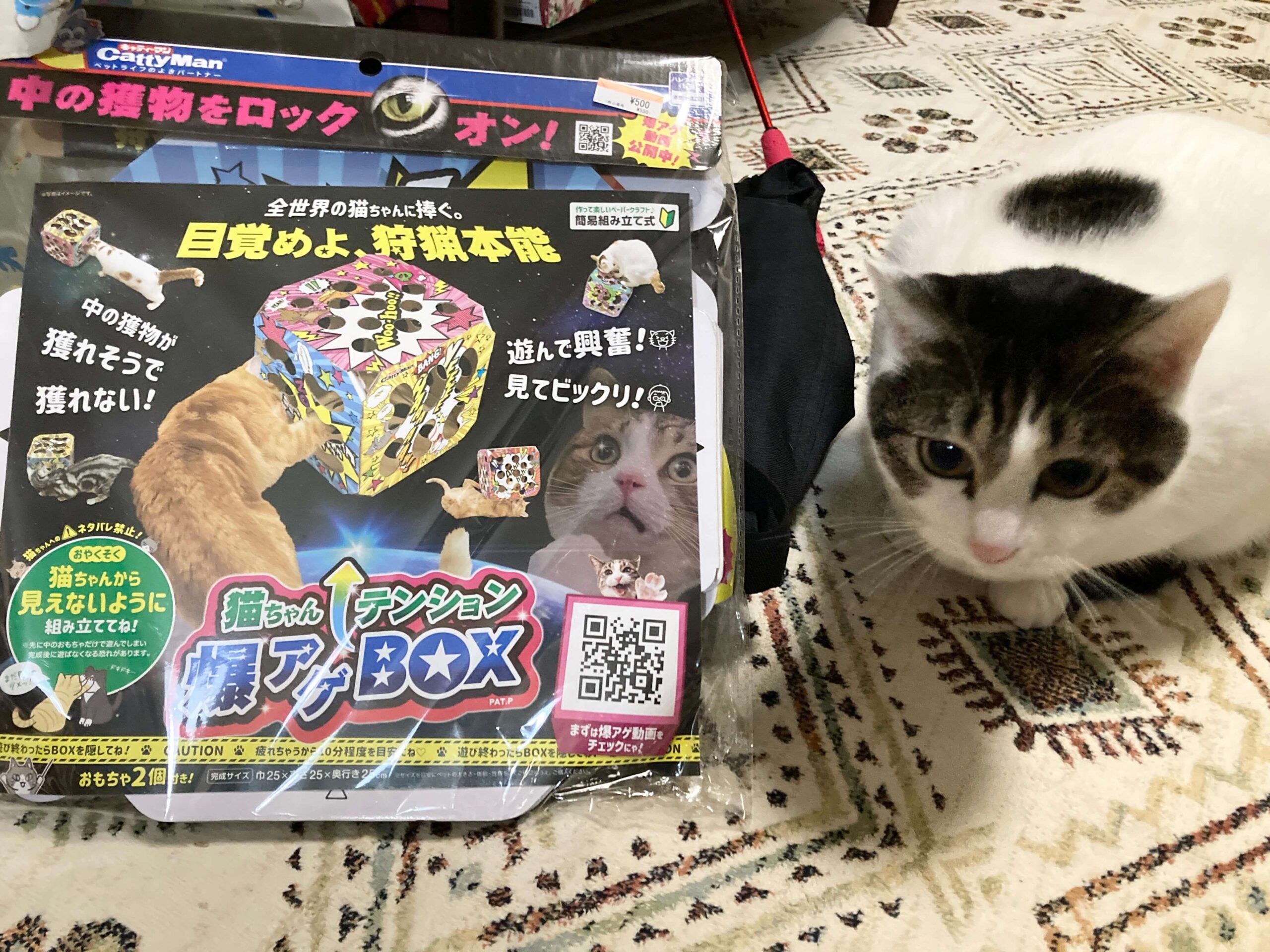 前々から気になっていた猫のおもちゃ「猫ちゃんテンション爆アゲBOX」が500円に値下がりしていたので買ってみました!